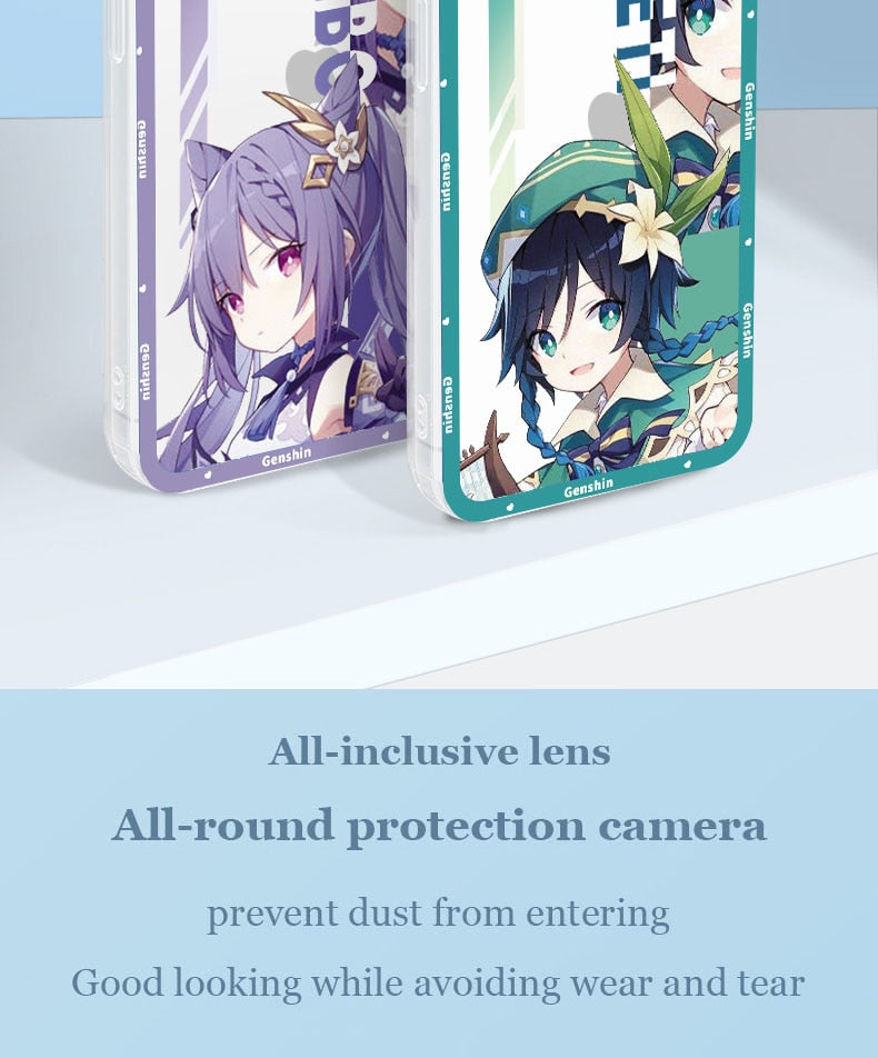 This Genshin Impact phone case is stylish and protective, showcasing stunning artwork inspired by the vibrant world of Teyvat. Crafted with precision, this case offers a perfect fit for your device, safeguarding it against everyday bumps and scratches while allowing easy access to all buttons and ports. With its sleek design and high-quality materials, the Genshin Impact Phone Case is a must-have for any dedicated adventurer seeking to bring their favorite characters with them wherever they go. Unleash your inner traveler and protect your phone in style!